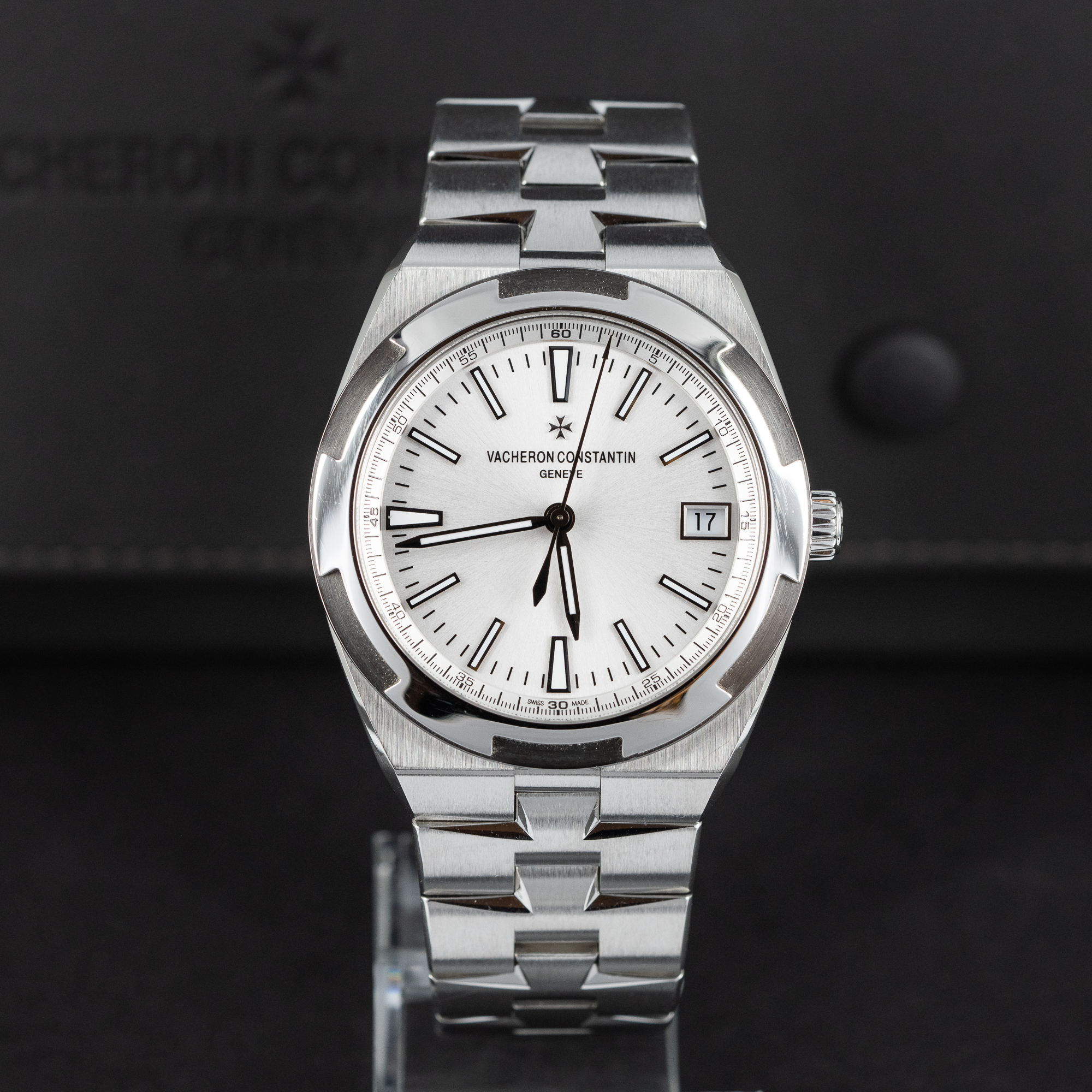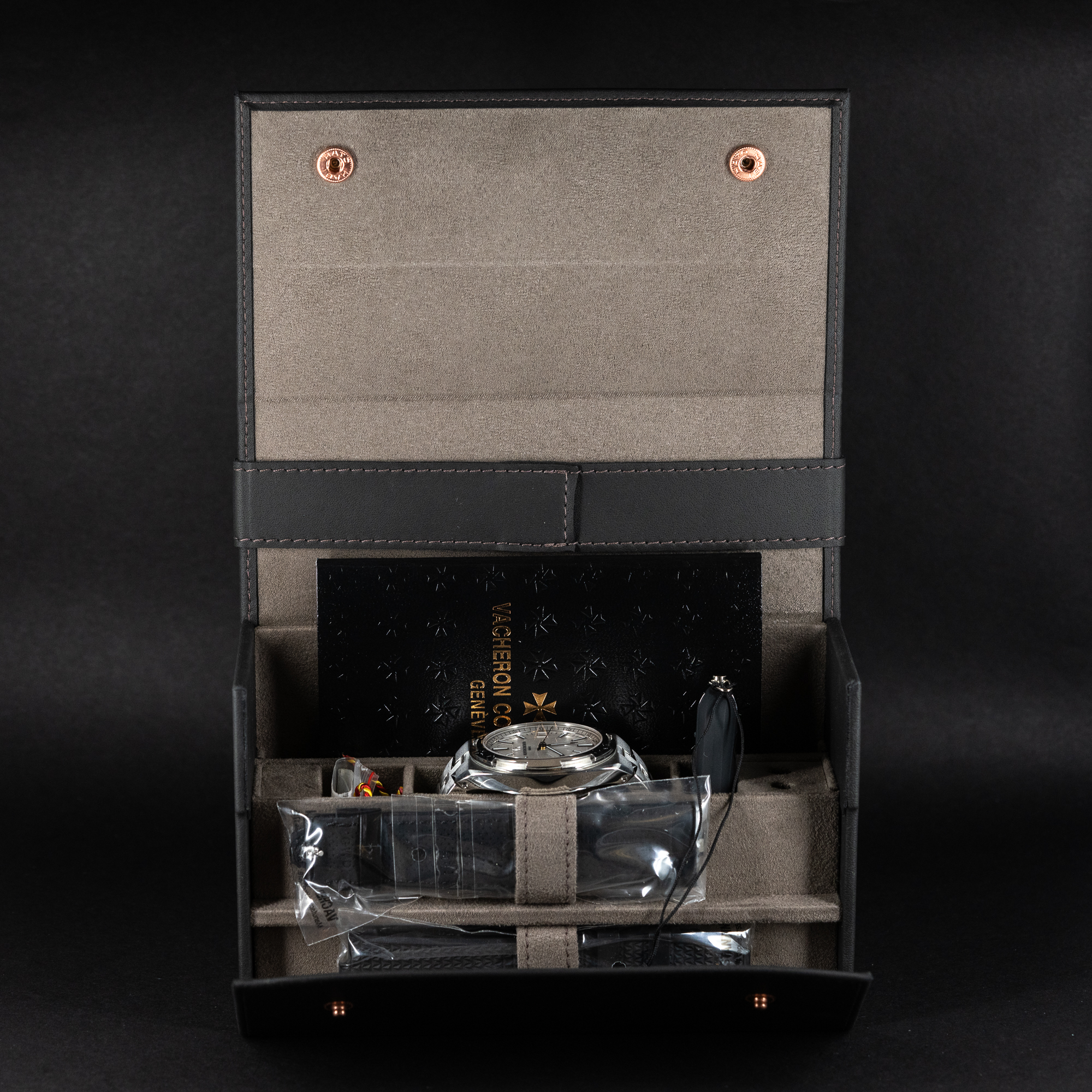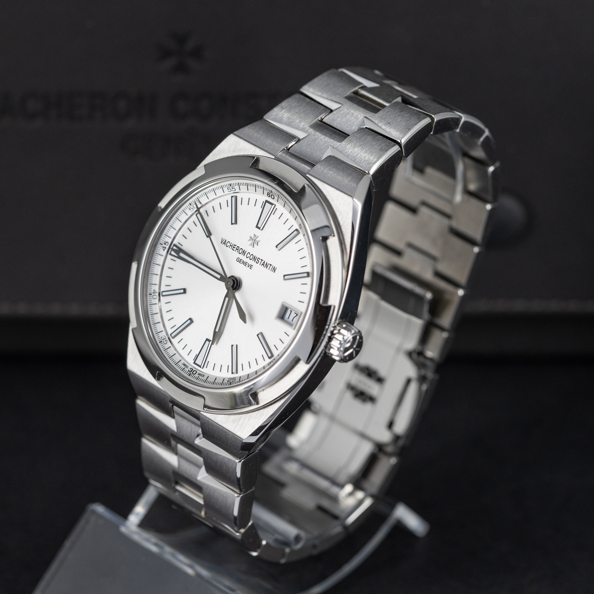 Vacheron & Constantin Overseas ref. 4500V/110A-B126 vuodelta 2016. Full-set, kaikki laatikot ja paperit. Suomikello. Kellossa on virheetön kellotaulu ja osoittimet. Teräskuoressa hyvin pieniä käytön jälkiä. Vähän käytetty yksilö alkuperäisellä teräsranteella. Koneisto on Vacheron & Constantin kehittämä cal.5100 automaattikoneisto jossa on 20-karaatin kultaroottori ja 60h käyntivara.