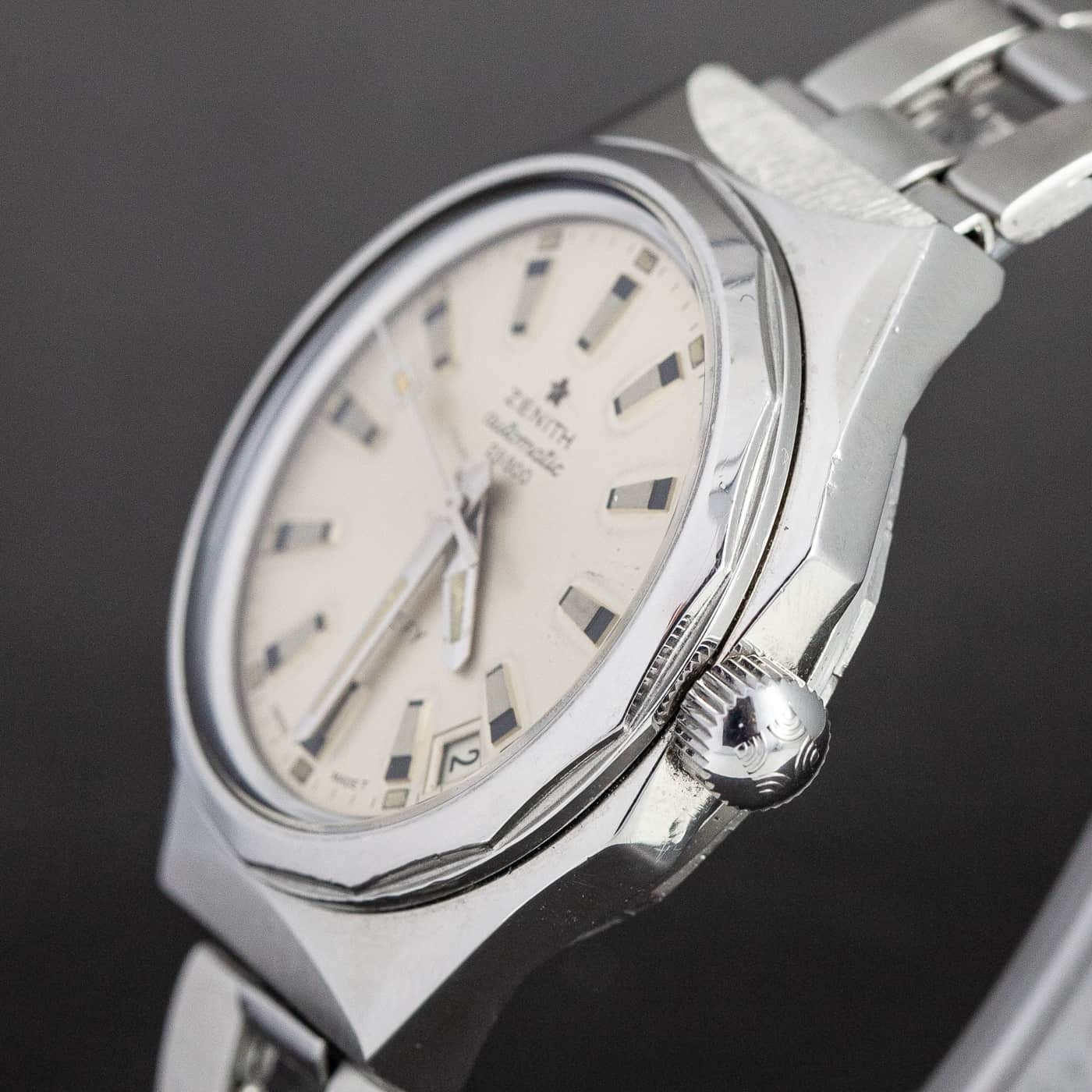 Zenith Defy Automatic ref. A3643 sukeltajankello n.vuodelta 1970. Zenith cal.2562 PC automaattikoneisto. Täydellisesti kunnostettu kokonaisuus. Guy Frersin valmistama alkuperäinen teräsranneke. Roiskevesitiivis, ei sovellu sukelluskäyttöön. Kuoren halkaisija 37mm.