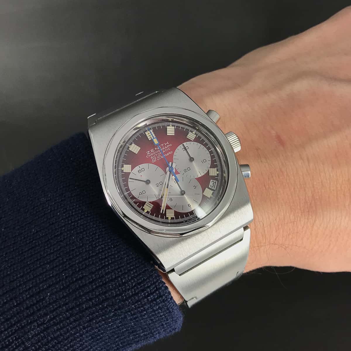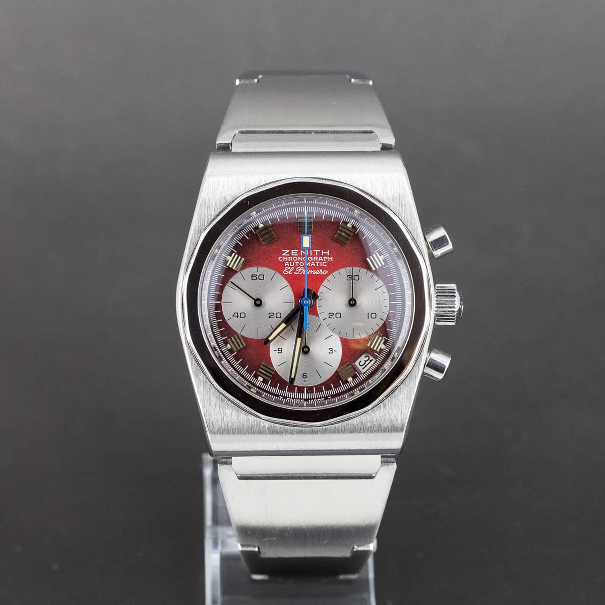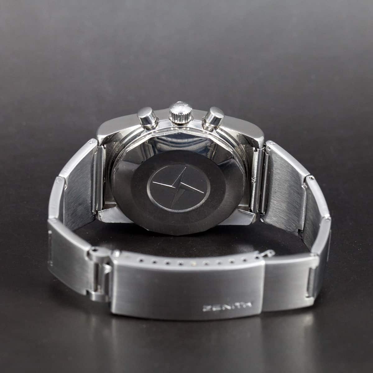 Koneisto on Zenith El Primero cal. 3019PHC, 31 kivisellä päivitetyllä rakenteella. Alkuperäinen, harvinainen Zenith 2672/ZR teräsranneke.