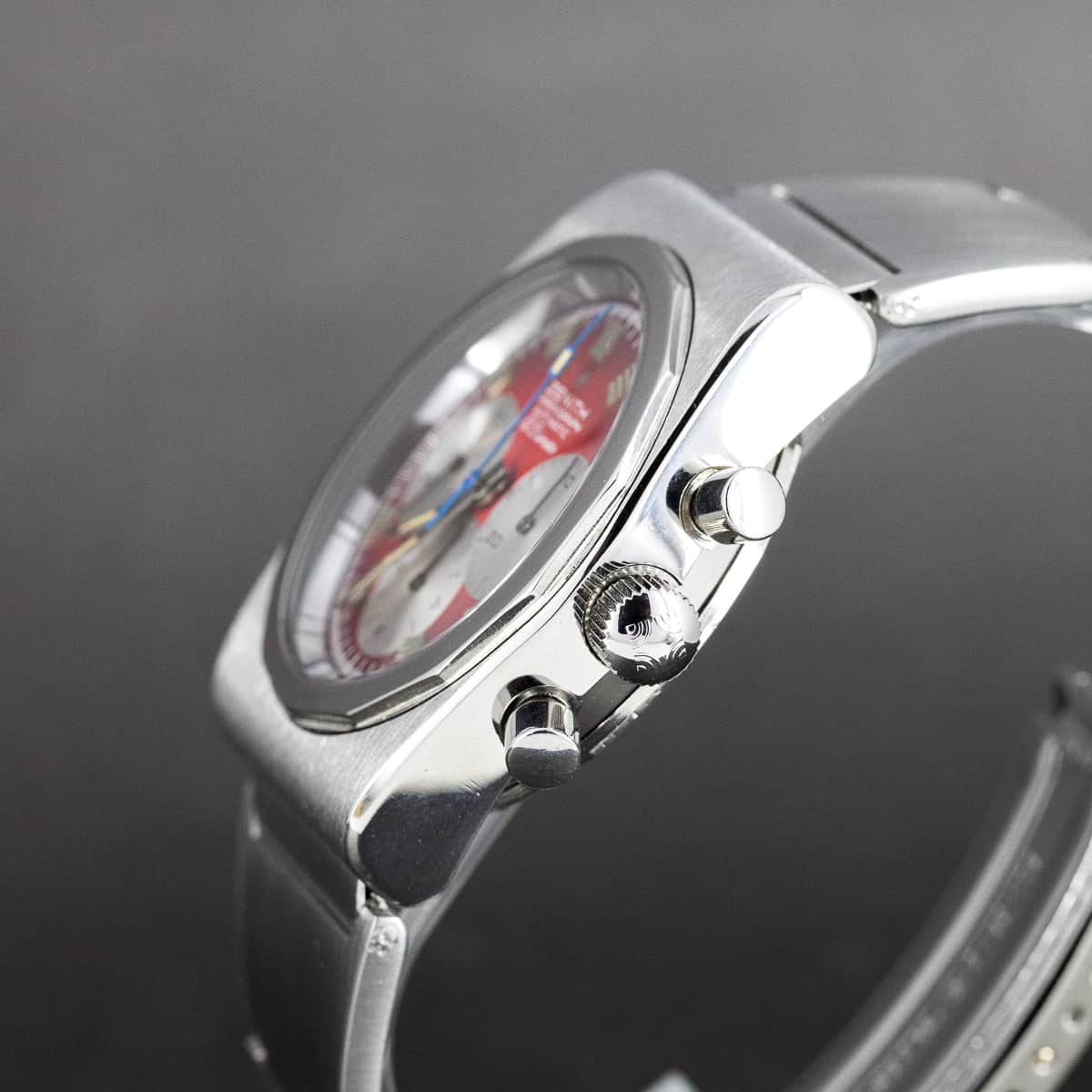 Harvinainen Zenith El Primero ref. A781 vuodelta 1971. Tätä mallia valmistettiin vain 1000kpl. Juuri täydellisesti kunnostettu kokonaisuus. Huollossa kelloon vaihdettiin mm. Zenithin toimittama uusi safiirilasi ja nuppi Zenith logolla.